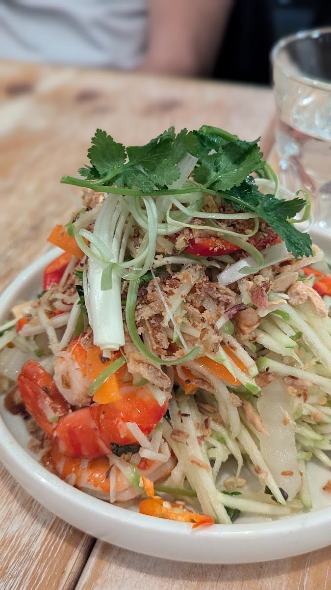 The menu at Cash Only Diner features an exciting variety of dishes that will satisfy any craving. Start with the crispy and delightful spring rolls, a fan favorite that’s packed with flavor in every bite. For something more filling, the Banh Xeo-a Vietnamese-style pancake filled with savory ingredients-offers a delicious combination of textures and tastes. If you’re in the mood for something fresh, the Prawn Green Apple and Mango Salad provides a zesty mix of sweet, tart, and savory, perfect for those seeking something light and refreshing.