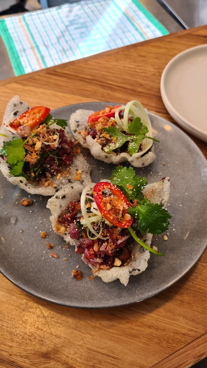 Meat lovers will find satisfaction in dishes like the Beef Tartare, served fresh with carefully selected ingredients that bring out the best in this classic dish. And for those who enjoy rich, succulent flavors, the Crispy Pork Belly is a must-try. With its perfectly crisp skin and tender meat, it’s the ideal comfort food that pairs wonderfully with the diner’s selection of cocktails.